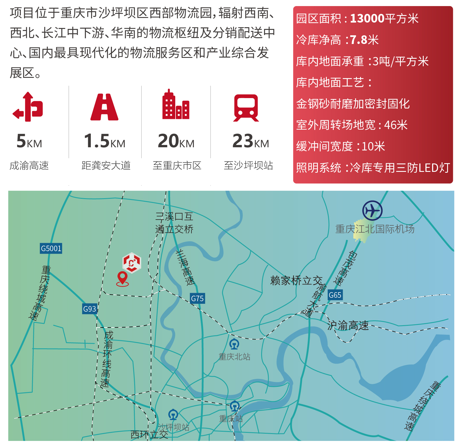 ?區(qū)位優(yōu)勢——項目位于重慶市沙坪壩區(qū)西部物流園,輻射西南、西北、長江中下游、華南的物流樞紐及分銷配送中心、國內(nèi)最具現(xiàn)代化的物流服務區(qū)和產(chǎn)業(yè)綜合發(fā)展區(qū)。